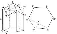 Quitte à changer d’unité de longueur, on peut considérer que la longueur du côté de l’hexagone AB’CD’EF’ vaut 1 unité de longueur (figure suivante). La longueur \(\scriptsize h = AH\) est plus grande que 1. L’inclinaison des losanges du fond par rapport aux parois latérales dépend de la position du point B sur l’arête de l’alvéole.
